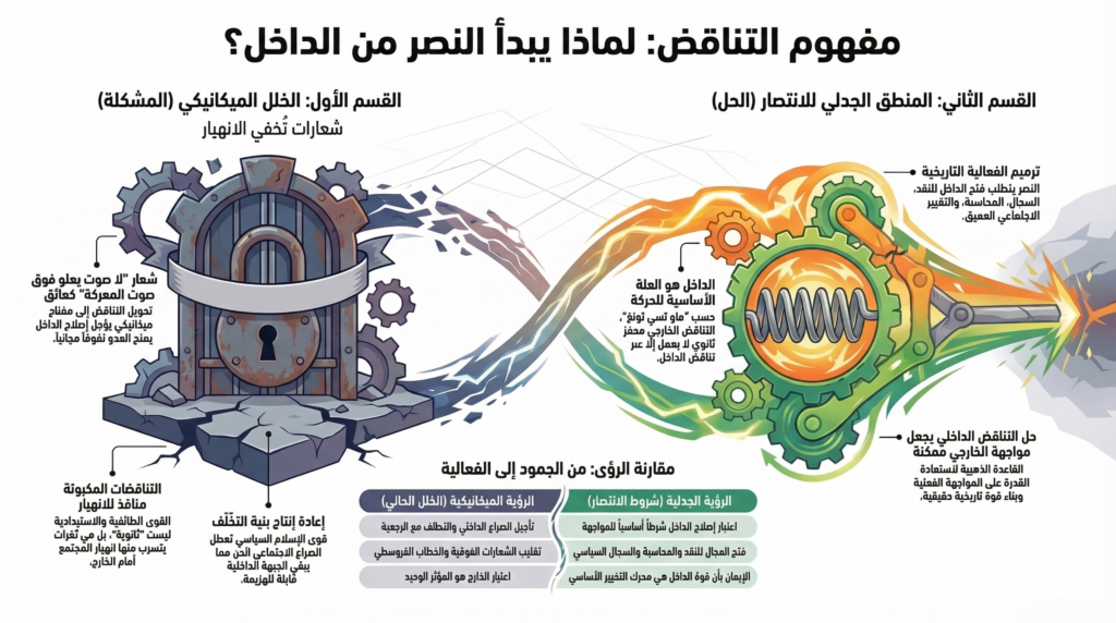 الوضع الحالي ينبغي أن يفهم كأزمة أعمق في بنية الوعي السياسي . وهنا تحديدا، تصبح العودة إلى استكشاف إرث فكري تشكل بعد نكسة 1967، حين واجه مثقفون يساريون الهزيمة لا بالإنكار، بل بالنقد الجذري. من بين هؤلاء، برزت أعمال صادق جلال العظم في "النقد الذاتي بعد الهزيمة"*، والياس مرقص في *"عفوية النظرية في العمل الفدائي" و"المقاومة الفلسطينية والموقف الراهن"، وياسين الحافظ في "اللاعقلانية في السياسة" و "الهزيمة والأيديولوجيا المهزومة".